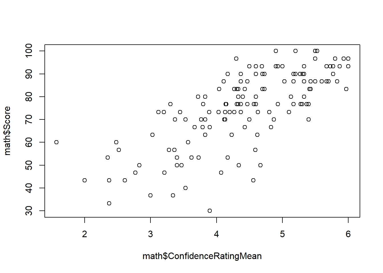 plot(math$Score ~ math$ConfidenceRatingMean)
