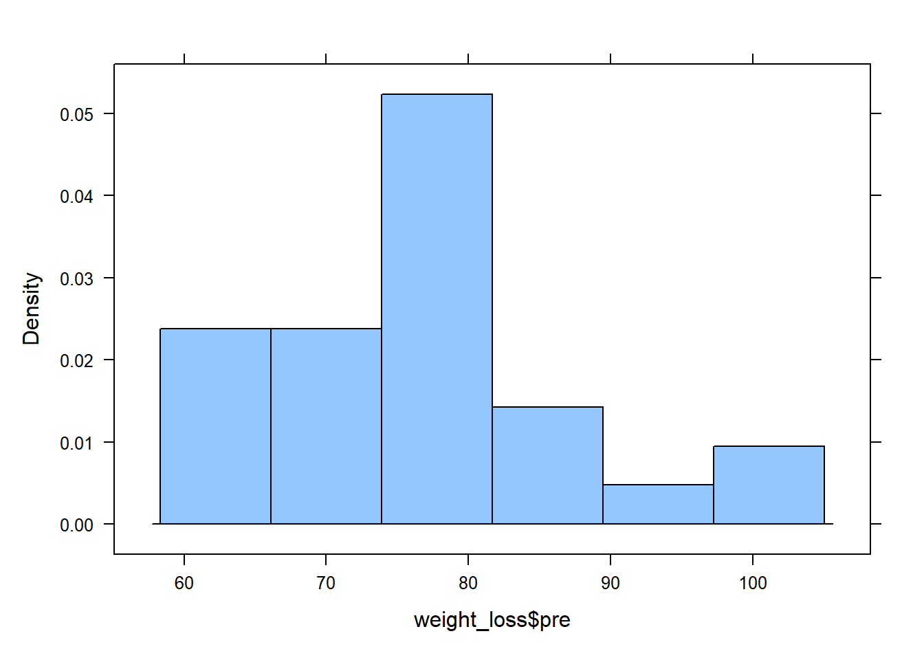 favstats(weight_loss$pre) min Q1 median Q3 max mean sd n missing