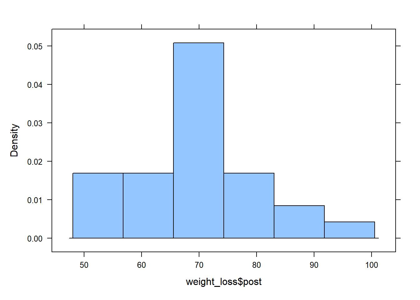favstats(weight_loss$post) min Q1 median Q3 max mean sd n missing
